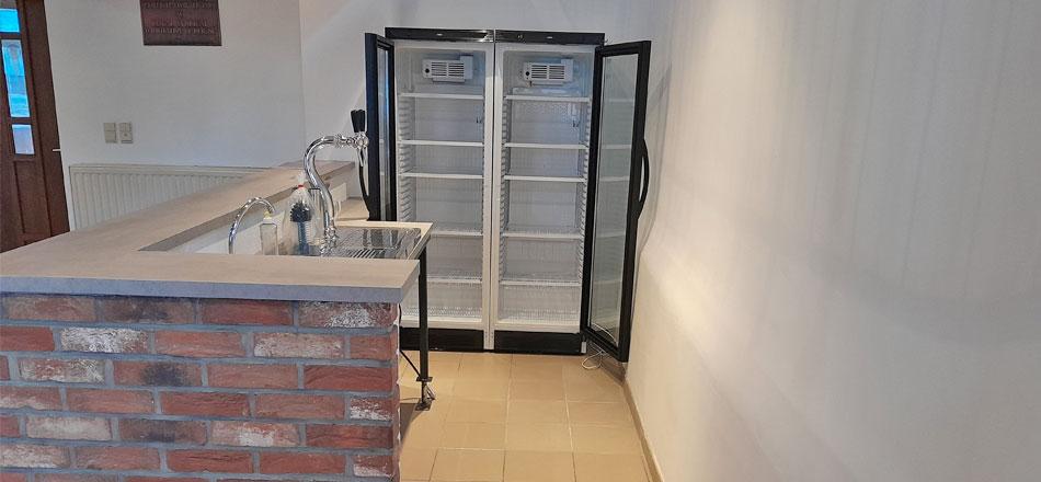 - Bar équipé : éviers, pompes à bière, 2 frigos